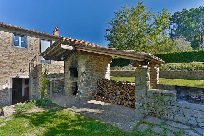The villa has a garden area to the front and side. There is an outside wood oven and barbecue built in stone. The villa also has its own private car parking spaces for 2 cars. It has a pretty garden with outdoor dining and panoramic views.