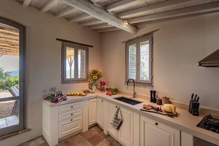 Just on the other side of the landscaped garden there is an annex building where there are 4 beautiful en-suite bedrooms, a spacious kitchen and a cozy living room that enjoy a spectacular view over the lovely wooden pergola and the infinity pool.