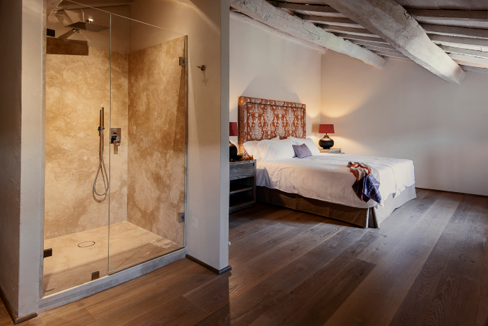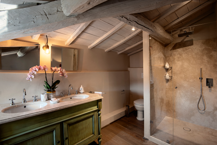 bathrooms. Vaulted ceilings, reclaimed terracotta tiles floors, 13th