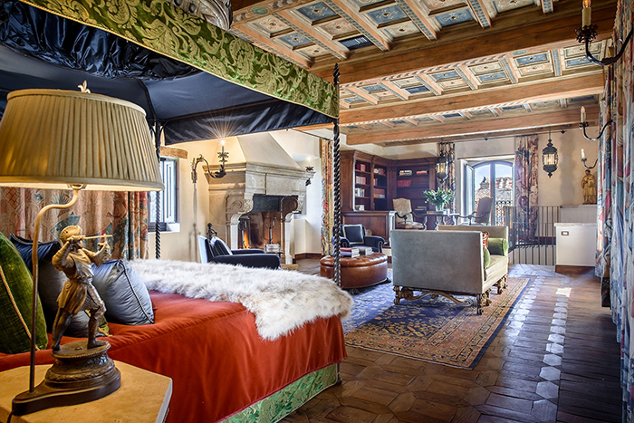 The castle features many beautiful terraces around the property that are furnished for relaxing. Outside, two outdoor terraces offer stunning views and are available for