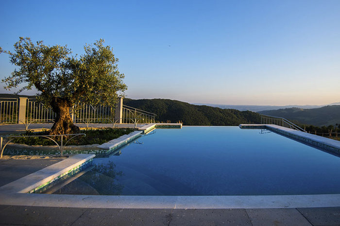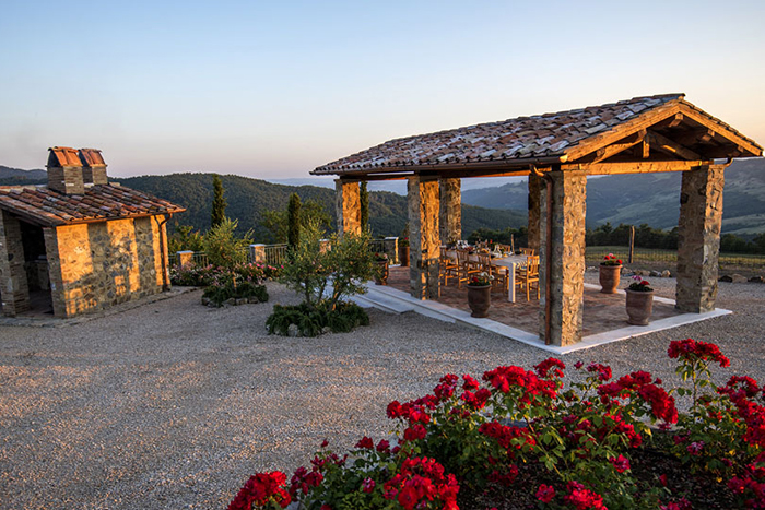 Villa Acqua is a pretty, newly built villa located on the Tuscany/Lazio/Umbria border. The villa is set in a large garden and it sleeps up to 9 guests in 5 bedrooms and 3 bathrooms. A country villa in Trevinano, a peaceful village perched between Lazio, Tuscany and Umbria, halfway between Rome and Florence. The view from the villa is spectacular. From the terrace you can enjoy the beautiful views of Monte Rufeno Nature Reserve and the rolling Tuscan hills. It is a newly constructed stone villa built using some of the traditional materials of Tuscan farmhouses. The interior finishes are of the highest quality while maintaining a natural style; wooden beams, terracotta and travertine floors. The furniture has been made by master craftsmen and makes the interior a warm and comfortable. The villa is surrounded by greenery and a large garden with olive trees. It offers complete privacy for guests to fully enjoy all the peace and beauty the Tuscan countryside offers.