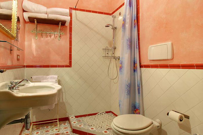 Straight ahead is the main bathroom, which is a bright room decorated with hand painted terracotta tiles. There is a full size hydro massage bath tub and a shower fitting. To the left there are 2 bedrooms; a twin and a triple. Both bedrooms are spacious with tasteful furnishing and ample wardrobe space. The triple bedroom has a double bed and a single bed. To the right there are another 2 bedrooms; a twin and a triple. Both bedrooms are spacious with tasteful furnishing and ample wardrobe space. The triple bedroom has an en-suite bathroom with shower.