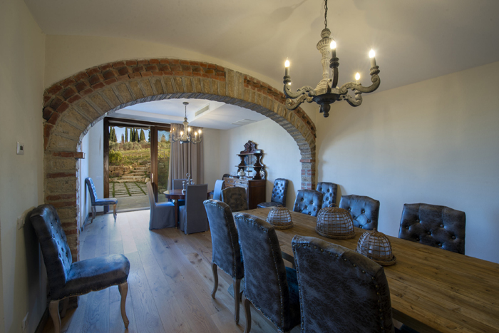 Villa Alghieri is a fabulous, luxury villa set in a 20 acre county estate in the heart of Chianti. It is located in beautiful countryside but just 900 mts from the medieval village of Panzano, in an area renowned for its wine and dotted with wineries both large and small. Vineyards dominate the scenic landscape here. The property is situated between Florence and Siena and a great central location to explore the rest of Tuscany from. The villa, originally a farmhouse, was built during the XVI and XVII century. It was renovated by the present owner in 2014 and retains many of its original features. The owner has made use of geothermal energy and solar panels to provide hot water and heating giving the property its green credentials. Villa Alghieri is close to the local village of Panzano with a lively mix of Enotecas, bars and restaurants including a famous Tuscan butcher. It is within easy reach of many main towns and cities. Florence 36km, Siena 42km, Greve in Chianti 7km.