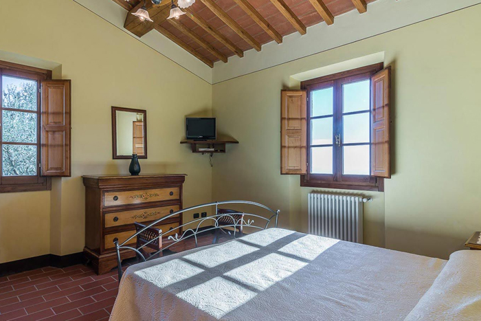 Villa Buggiano is centrally located and set in a pretty olive grove that overlooks Montecatini Terme and the Nievole valley below. It is part of a 17th century farmhouse that has been carefully restored, retaining its Tuscan character, but with all modern comforts. The villa is located on a hillside and can comfortably accommodate 10 guests in 5 bedrooms. The villa is laid out over 2 floors and is approx. 300 sq mts.