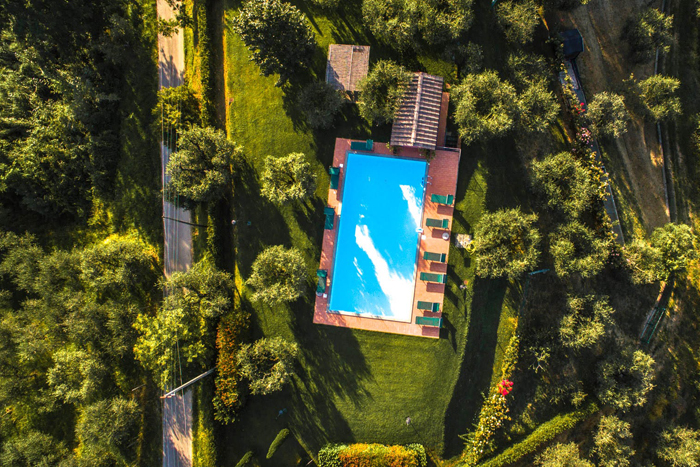 The spacious gardens offer plenty of opportunities for exploring, relaxing as well as al fresco dining and boasts wonderful views. The swimming pool (12x6) is fully fenced and offers a cool relief from the long, hot Tuscan summer. The pool can be heated in cooler months with solar panels. There is a spacious poolside area with comfortable sun loungers and a pergola to relax under. There pool area also has a pool house with a changing room and shower room. The garden is also well lit at night.