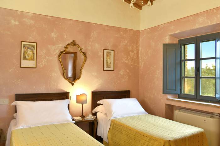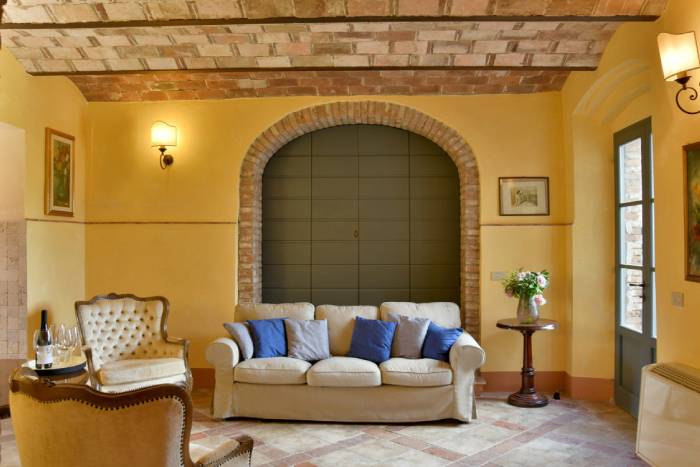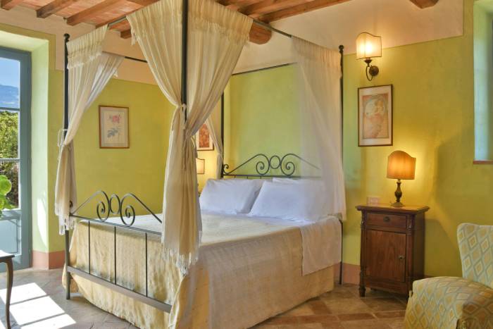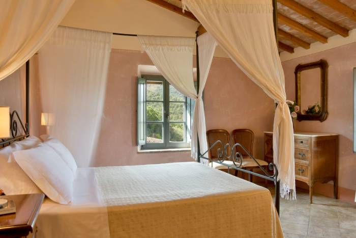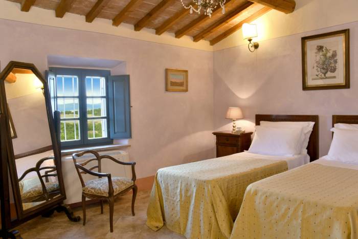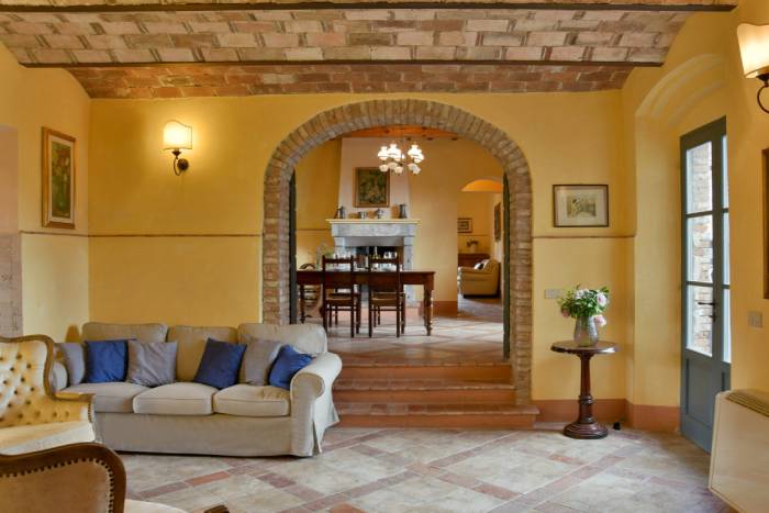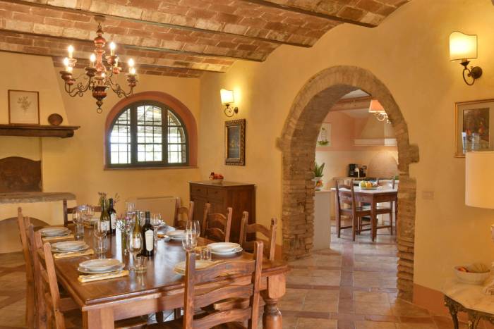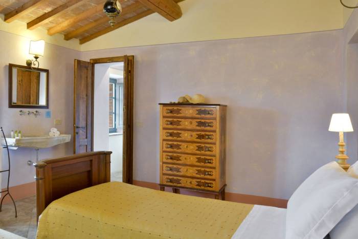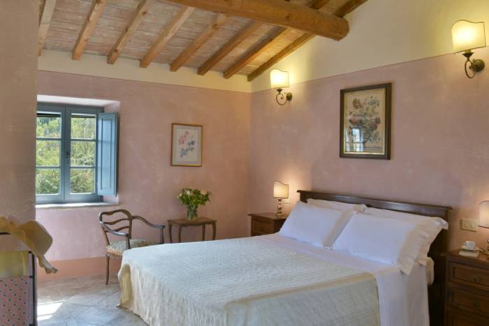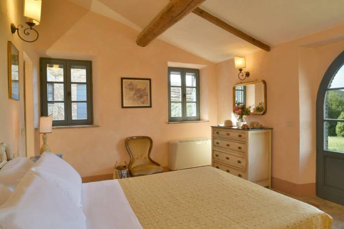 Villa Castagneto is set out on two levels. It can host 18+2 guests in 9 bedrooms all with ensuite bathrooms - 2 bedrooms are on the ground floor and 7 are on the first floor (one of the bedrooms has a private lounge, where it is possible to add another 2 beds).