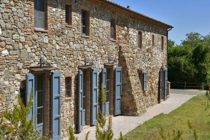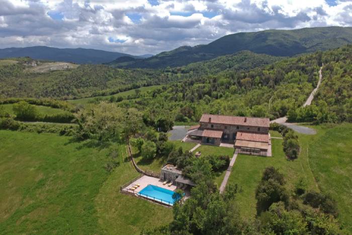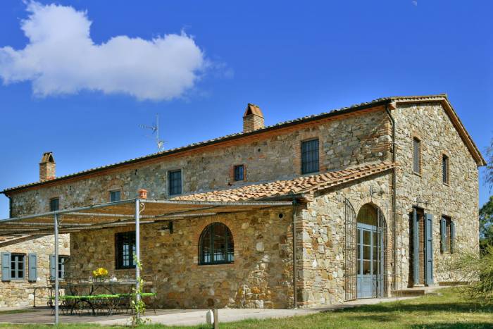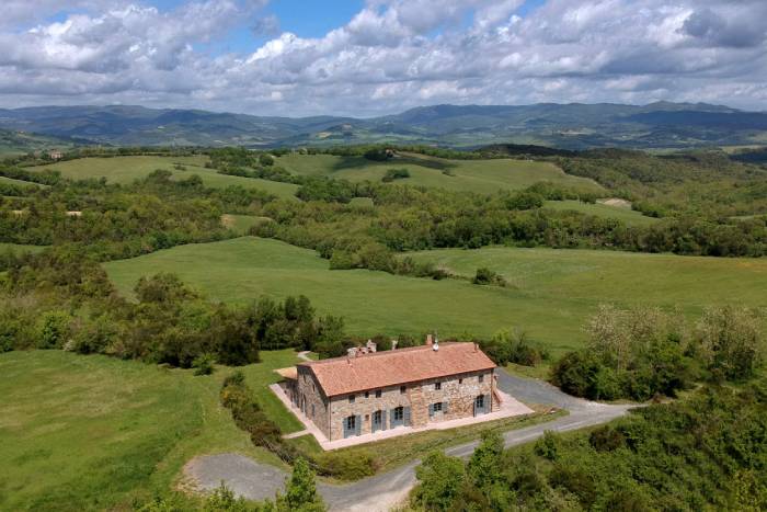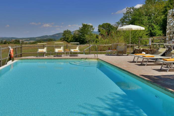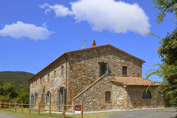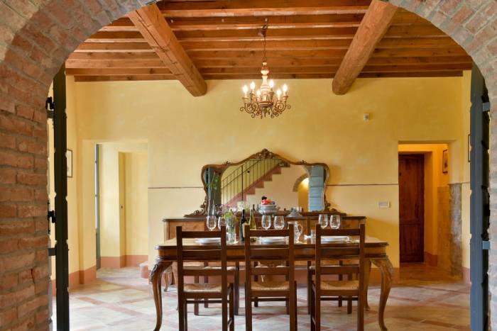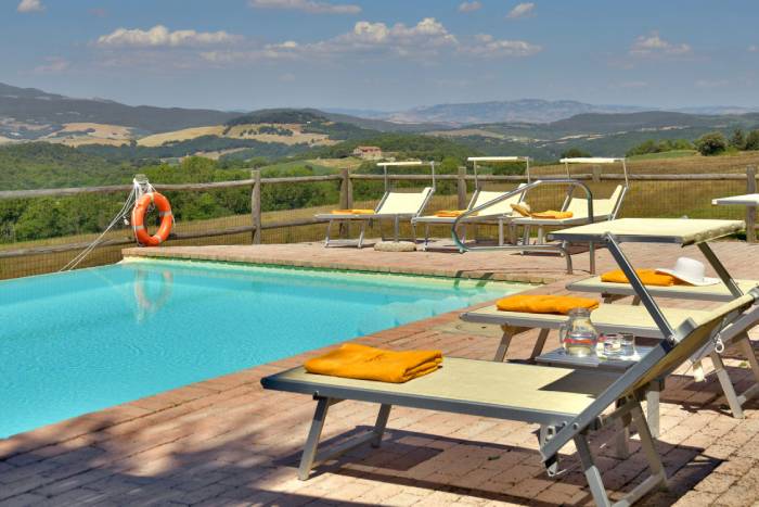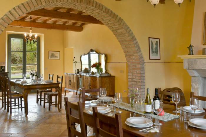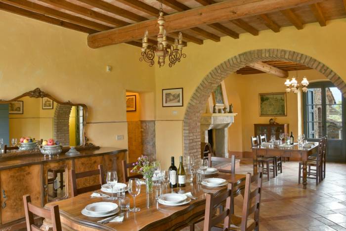 of the Tuscan coast. This pretty, restored farmhouse is set out on two floors, sleeps 18+2 guests in 9 bedrooms/10 bathrooms. In the surrounding area there are many interesting local towns and villages to visit, such as Casale Marittimo (closest shops) 4 km, Marina di Bibbona (closest beaches) 17 km, Volterra 31 km and San Gimignano 61 km. Further afield towns such as Siena 85 km and Lucca 95 km are within easy reach.