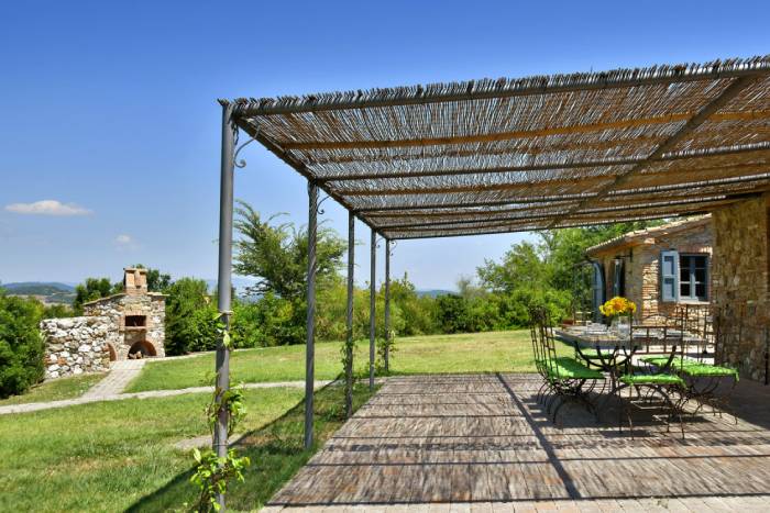 The villa sits in well maintained grounds, which have beautiful, panoramic views. There is a ping pong table, bbq and pizza oven. There is a covered, outdoor dining area with a large dining table. Situated a short distance from the villa is a heated, fenced pool (10x5m) with sun loungers, deckchairs and umbrellas.