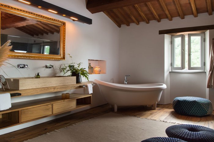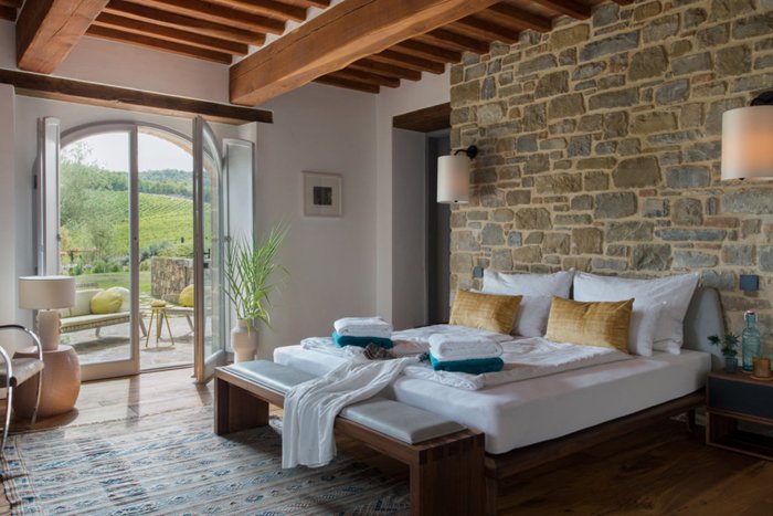This is a spacious luxury property with all modern comforts and is furnished in a charming, chic style. The interior design of the villa is fresh and contemporary and the villa has large windows making it light and airy. The villa features original stone walls, beamed ceilings and parquet floors. All bedrooms have en suite bathrooms. The villa boasts fabulous views over the countryside and has a gym, Turkish bath, sauna, yoga room and an outdoor play area for children, making it a perfect choice for all ages. The property was originally a tiny Borgo and is now made up of 2 buildings. It is a very spacious property and features large walk in showers in the bathrooms and several bedrooms open onto a balcony/terrace. The décor is neutral so it makes it light and airy and furnishings and fittings are top quality. The designer kitchens are by Florentine craftsmen. There are multiple spaces to enjoy the fabulous views.