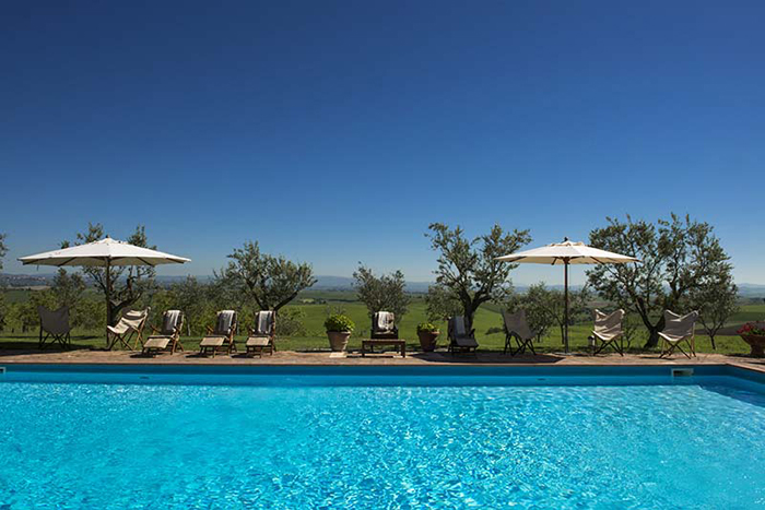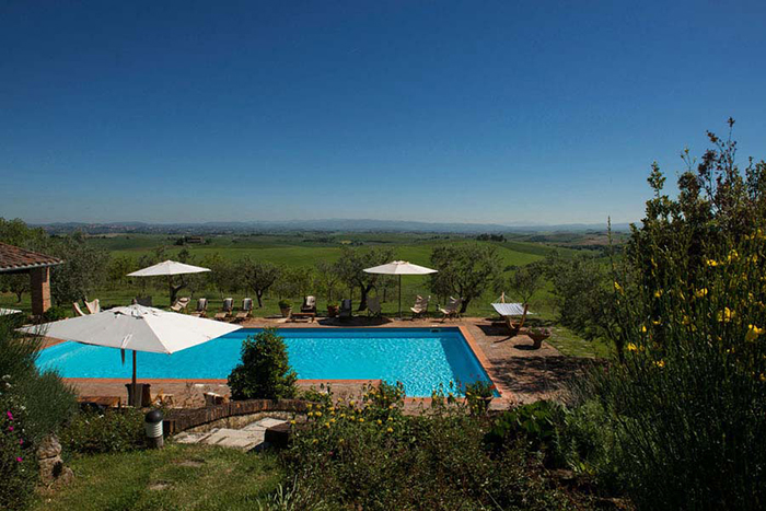 Today the villa has been beautifully restored to provide holiday accommodation and has stunning views towards the historic city of Siena. The villa retains much of its original character and charm, including an inner courtyard. As well as enjoying its elegant interiors, guests can enjoy the many facilities at the villa including a private tennis court, sauna, football court, well equipped gym and the pool table. The villa is set in 10,000 sq mts of well-kept grounds and the swimming pool (15x7.5mts), located just 200 mts from the villa, provides beautiful views over the countryside.