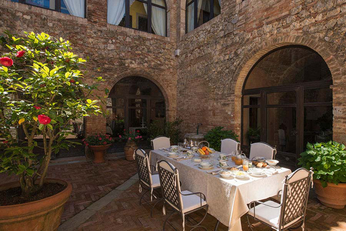 Villa Cortile is an elegant villa, that sits in the hills outside of Siena, dates as far back as back 1348. It has belonged to many noble Sienese families including a Marquis who took part in important Sienese affairs.