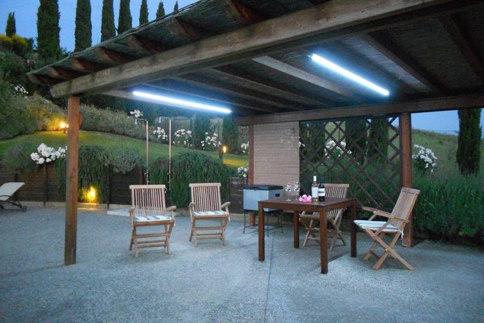 Outside the Villa offers a barbecue area, a wood fired oven, a gazebo with outdoor dining for up to 26 guests and an area to relax in with tables, comfortable armchairs, and sunshades.