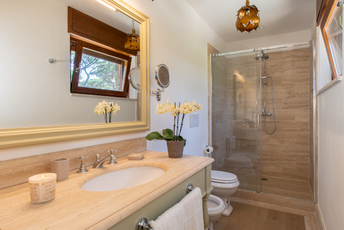 Villa Geraldine is a luxury villa located close to the beach in the Tuscan seaside resort of Roccamare. This exclusive residential estate is just a short drive from the pretty town of Castiglione della Pescaia. The house is accessed by a private entrance gate at the beginning of the estate and then by quiet private roads within the estate. There are views along the beach to the town of Castiglione della Pescaia and to the peninsula of Argentario in the distance. In the other direction, there are views to Rochette castle and the island of Elba.