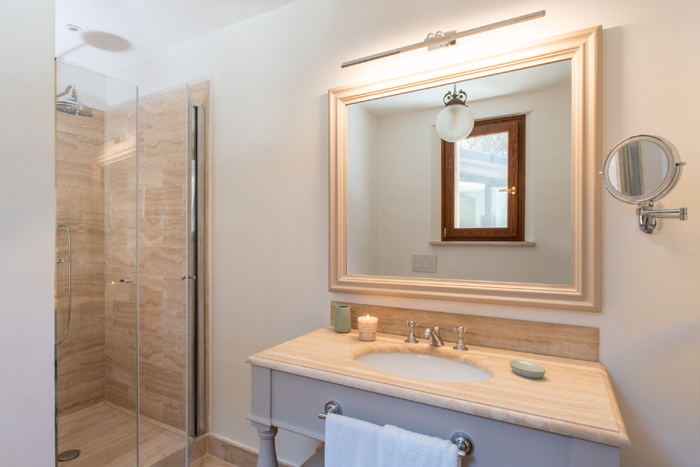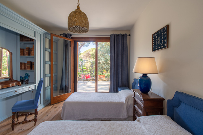 Villa Geraldine has been renovated in a modern style and can accommodate up to 14 guests. There are 7 master bedrooms with ensuite bathrooms and 2 bedrooms suitable for staff. The entrance to the main level opens into a beautiful living room with fireplace and there is direct access to the patio. The dining room has large French windows leading onto the garden. The kitchen is fully equipped and is also connected to the living area and has access to another outdoor dining area. The rooms are all very bright and the villa has air con throughout. All ground floor bedrooms have French doors providing access to the patio and garden.
