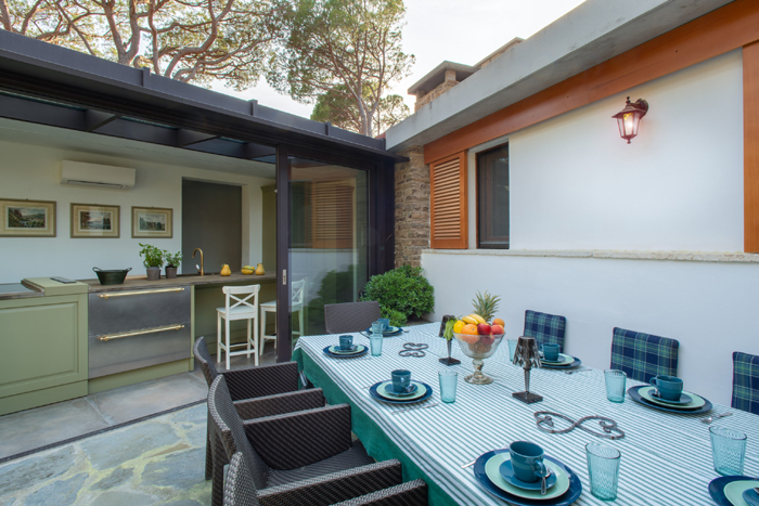 Large patios around the villa furnished for dining and relaxing