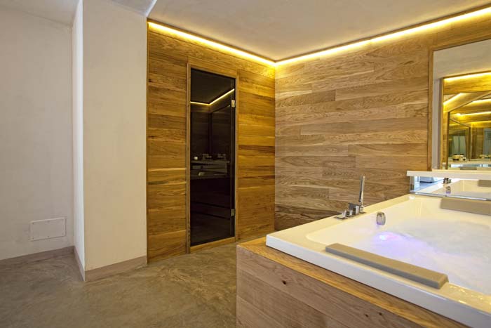 The ground floor has a small sitting area, 3 double bedrooms all with en suite bathrooms and a modern area offering gym facilities, spa and sauna