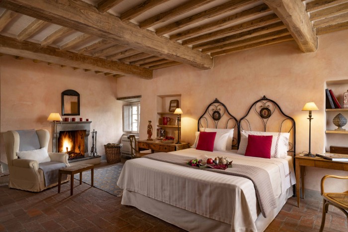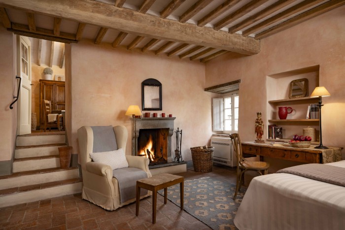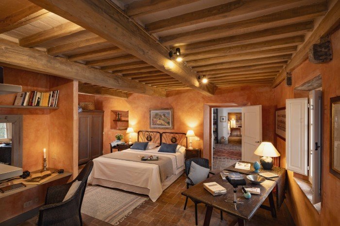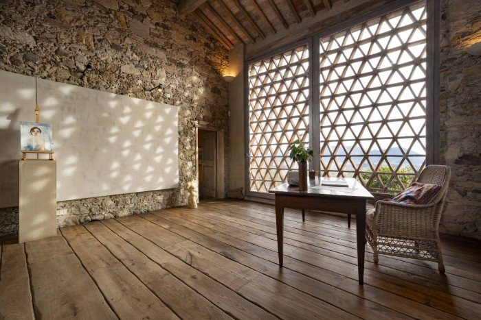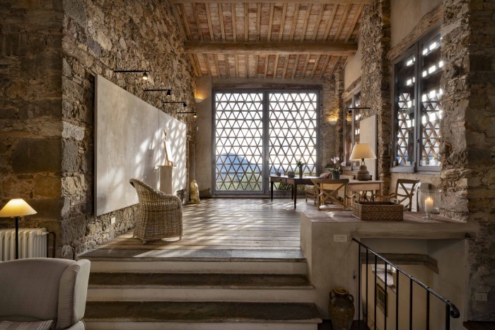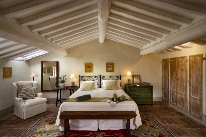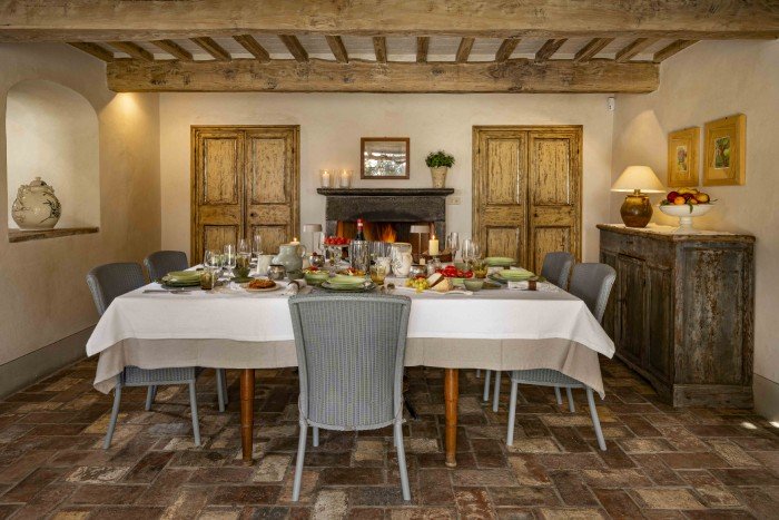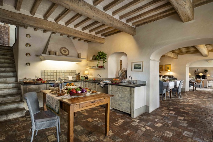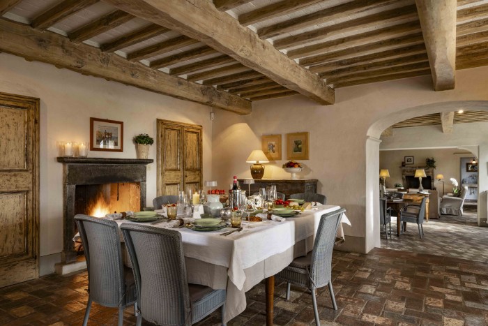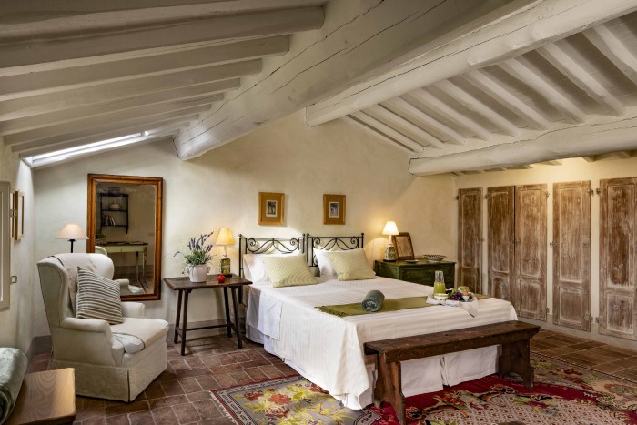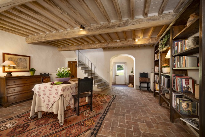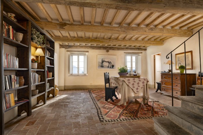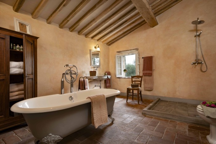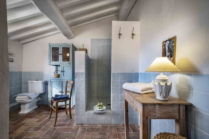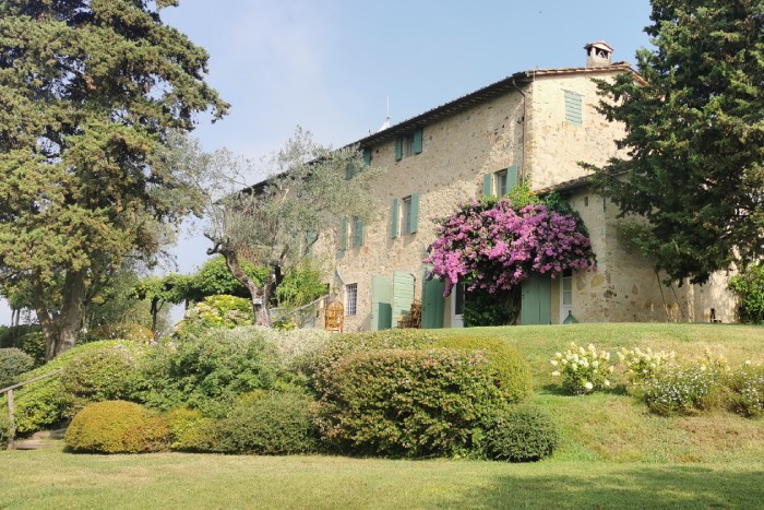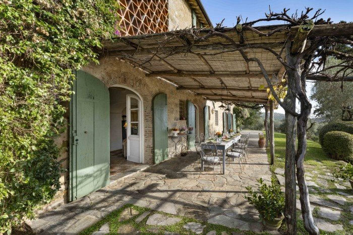 Villa Iris is located in the Tuscan hills, 10 minutes from Lucca, this beautifully restored 18th century farmhouse is set in 40 acres of olive trees and vineyards. The farmhouse is located on a hill, off a country road through a private gate. Views in all directions are of rolling, wooded hills and on a clear day you can see the Leaning Tower in Pisa. The house has recently been restored and the interior was designed and crafted by the finest craftsmen and in keeping with both Tuscan traditions and the highest standards of comfort. It has five large, bedrooms, six large bathrooms and four fireplaces.