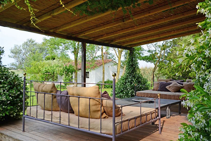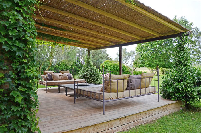 The villa is set in a very large garden (5,000 sq mts). There is a pretty furnished patio for relaxing outdoors. The garden features a bamboo wood and beautiful mature trees for shade in summer. There is a 25 mt heated infinity pool and the villa enjoys direct, private access to the beach at 700 mts