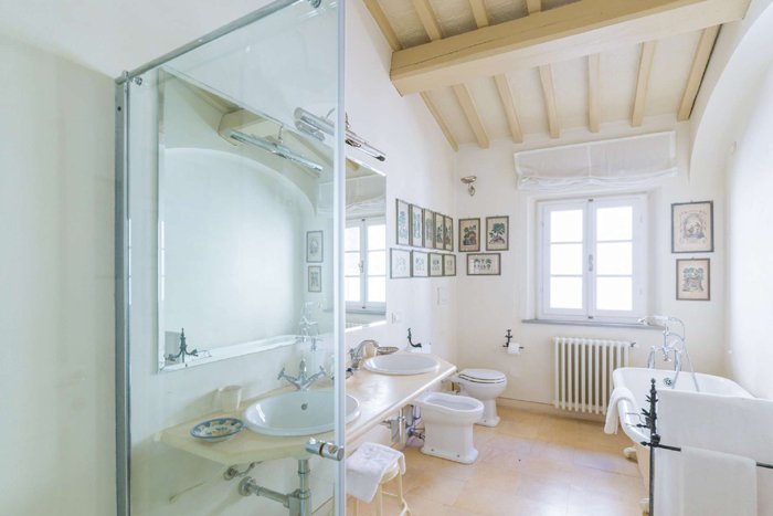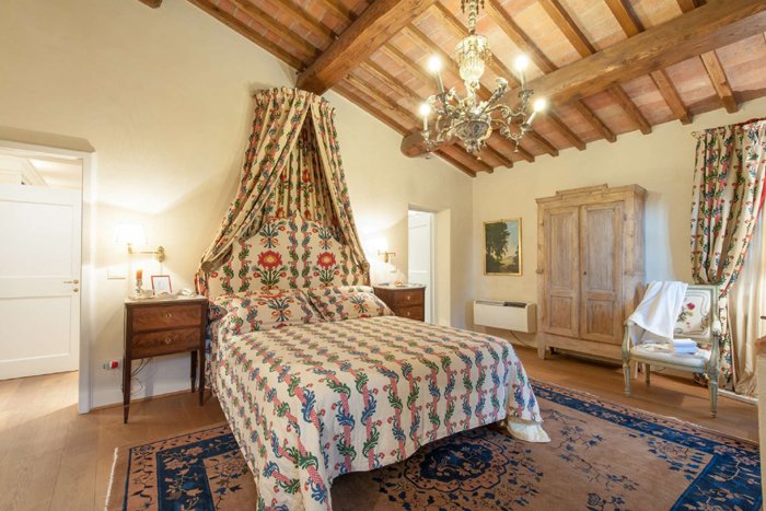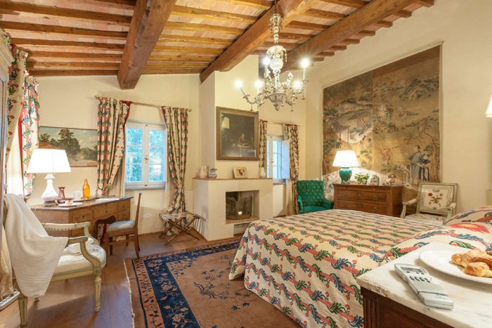 The villa overlooks the valley with a stunning view of the castle and was once inhabited by friars. The surroundings have remained untouched so that guests can experience the true Italian atmosphere, as it was centuries ago. The villa has two entrances; one from the borgo with its easy walk into the village and another from the main gate and the garden. The large garden and extensive grounds boast olive groves and many cherry trees. There are three terraces on different levels, including many shaded areas where you can relax while enjoying the scent of old French roses and lavender, that unique combination of sensory delight that is at the very centre of genuine Tuscan life.