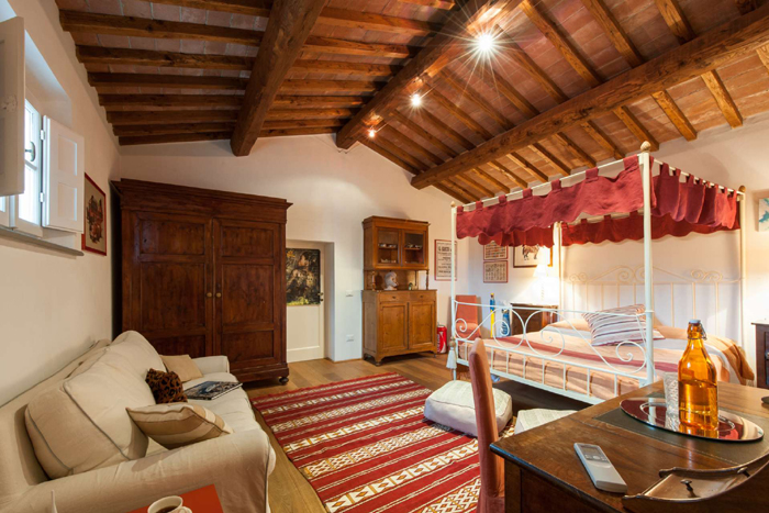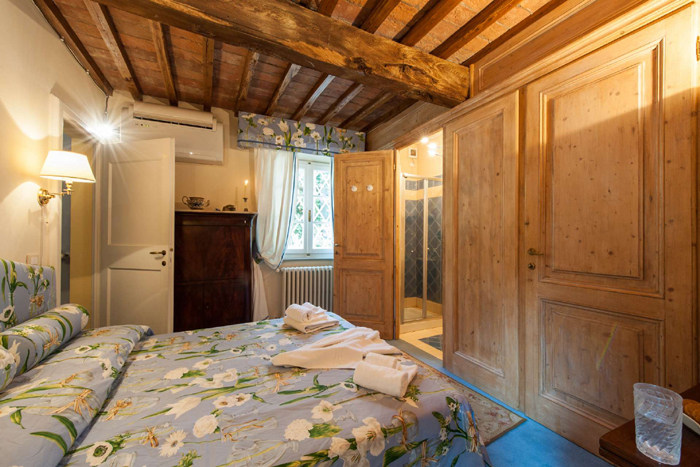 The villa overlooks the valley with a stunning view of the castle and was once inhabited by friars. The surroundings have remained untouched so that guests can experience the true Italian atmosphere, as it was centuries ago. The villa has two entrances; one from the borgo with its easy walk into the village and another from the main gate and the garden. The large garden and extensive grounds boast olive groves and many cherry orchards. There are three terraces on different levels, including many shaded areas where you can relax while enjoying the scent of old French roses and lavender, a unique combination of sensory delight that is at the very centre of genuine Tuscan life.