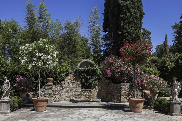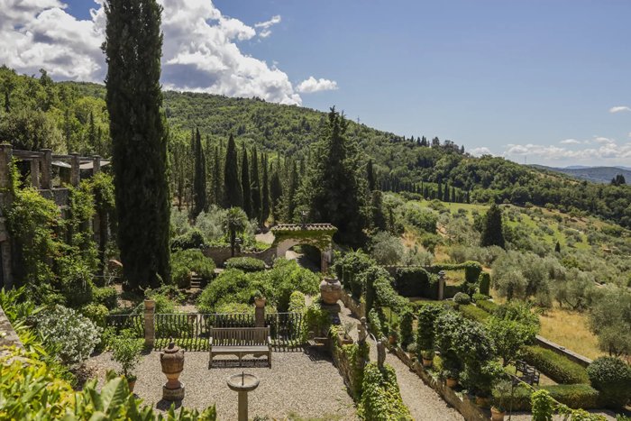 Idyllically situated amongst the rolling hills just outside Florence, the seven acre walled estate with its rich history, elegant accommodation and renaissance gardens is surrounded by a further 100 acre estate. The lush Tuscan landscape with its natural forests, vineyards, peaceful olive groves, and panoramic views provide the perfect setting for a memorable Tuscan holiday.