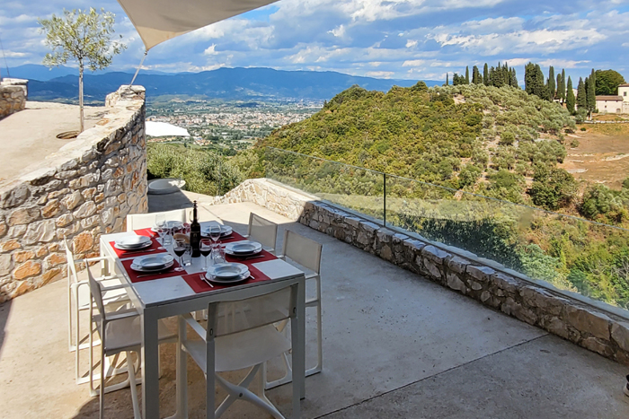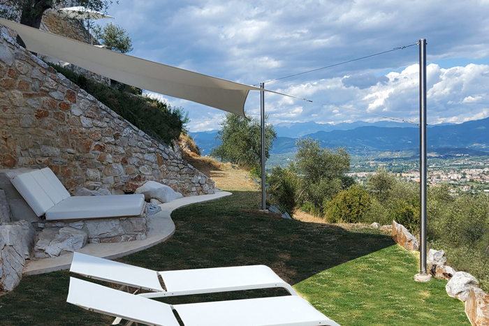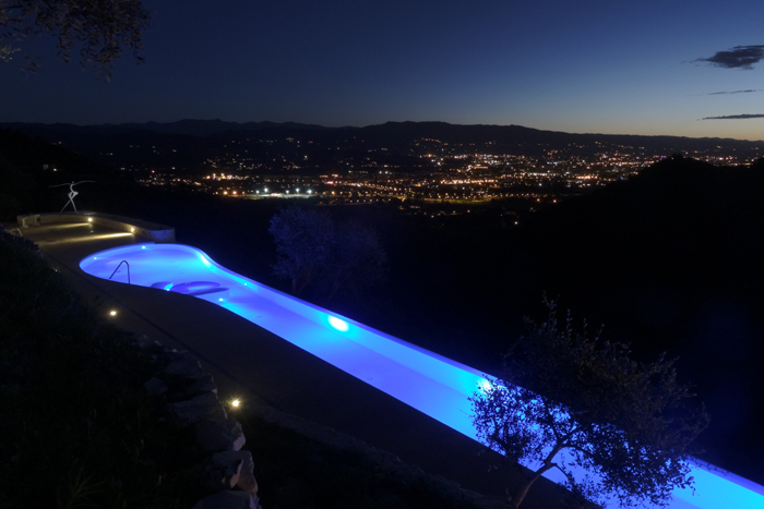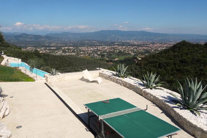 Villa Marmo Bianco is a spectacular, architect designed villa, with beautiful panoramic views set in the hills above Lucca. The property is situated at 200 mts above sea level and is surrounded by 10 hectares of private olive groves and woodland.