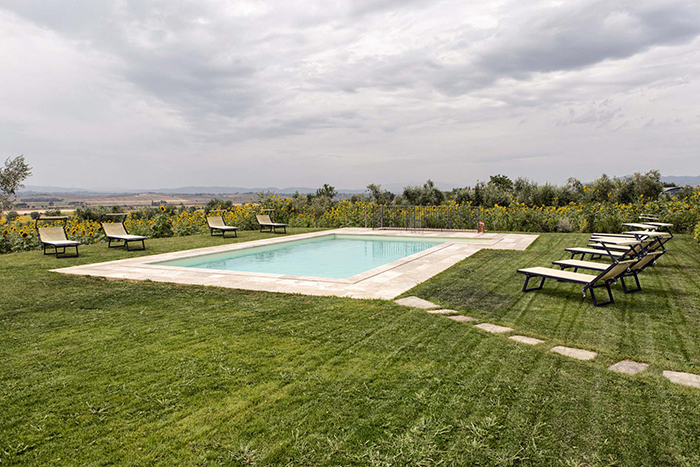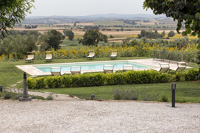 There is a well maintained garden with amazing far reaching views over the Tuscan countryside. The pool (10x5mts) is located at a short distance from the villa. There are 3 different covered outdoor areas for dining and relaxing