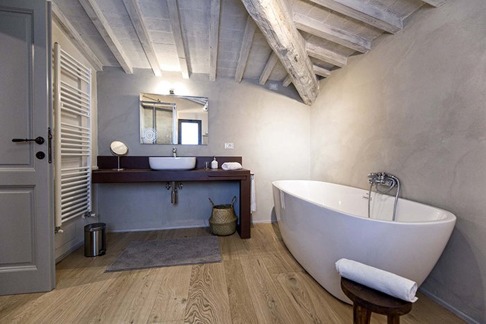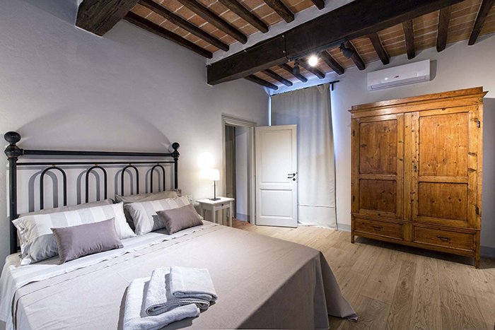 The first floor of this luxurious villa offers outstanding views over the countryside that reach from Montepulciano to Arezzo and in the distance you can see the charming hillside town of Cortona.