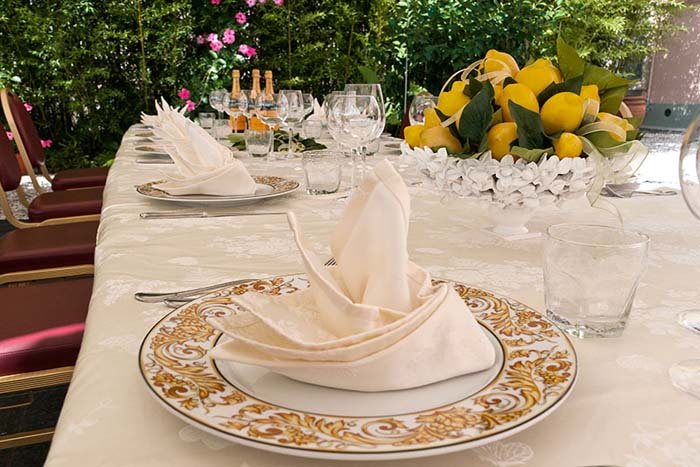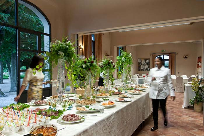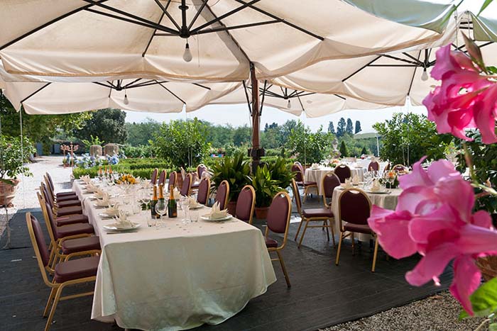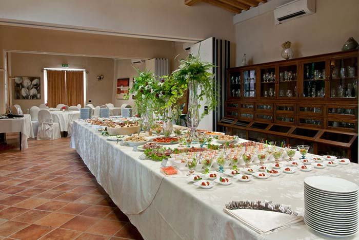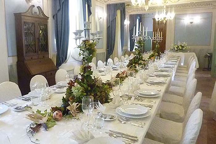 The Limonaia (original lemon house) has been converted into a large hall suitable for events such as weddings or meetings. It can be divided into four private rooms if needed for meetings (projector, internet connection available). Large round tables and large windows make this a wonderful all occasion room. (Additional charge for this room, please enquire for details).