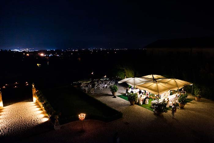 As with all formal Italian villas, the area around the house has fine gravel and lawns. Tables and chairs, which can comfortably accommodate 40 guests are situated under a large, white, canopied gazebo (ideal for outdoor wedding receptions). A paved path or a flight of steps, takes you to the formal, walled gardens, complete with a large fountain - the air is scented by the nearby walls of roses and over 100 potted lemon and grapefruit trees, which are scattered throughout the property. The views from the formal gardens look out over the valley and a pretty village. At the far side of the formal gardens, there is a large swimming pool area, with banks of roses and jasmine climbing two sides of an ancient wall, creating a shaded canopy area for relaxing.