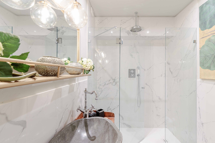 There are 5 bedrooms (4 double bedrooms and one single bedroom) with en suite bathrooms. One has a