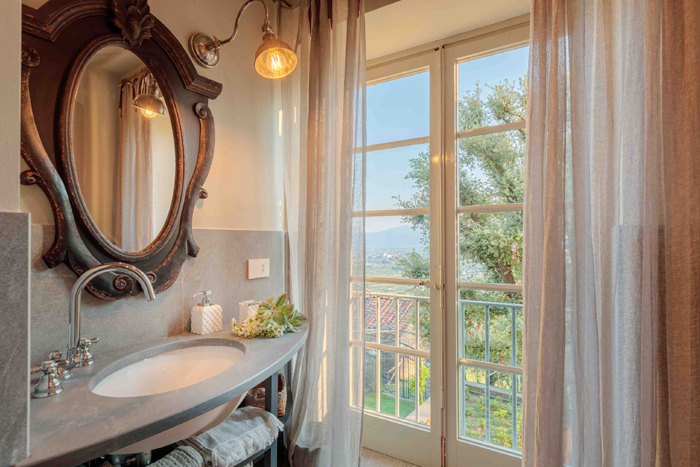 Villa Morini is a superb farmhouse, set in the rolling hills and olive groves close to Lucca. It has been recently restored and enjoys panoramic views over Lucca in the distance and features an indoor spa area with