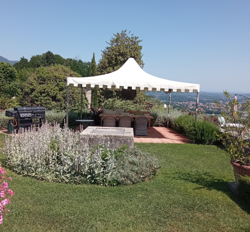 The large garden is furnished to offer shaded areas for relaxing and dining. There is a large patio with BBQ