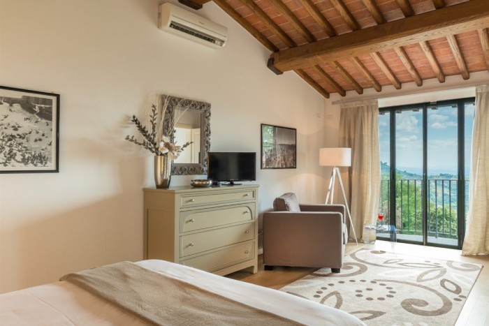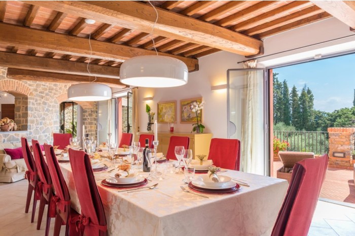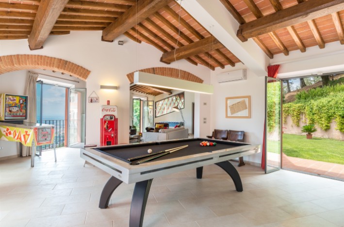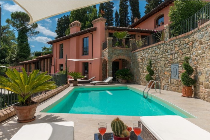 Villa Nievole is situated on a hillside, giving it stunning views over the Valdinievole valley towards Pisa and Livorno. The modern style villa is laid out on two floors with lodges and terraces. There is a beautiful, heated pool and terraces for outdoor dining.