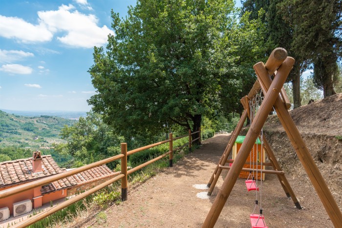 Villa Nievole is situated on a hillside 300 mt above sea level. It looks down on the Valdinievole valley, towards Pisa and Livorno. The villa is ideally situated for visiting the famous spa town of Montecatini Terme. It is also within easy reach of the art cities of Florence, Lucca, Volterra, San Gimignano and Pisa and the beaches in nearby Versilia. The villa is set out on two floors and surrounded by hillside terraces. It sleeps 10 guests in five bedrooms. It is an ideal property for a large family or group of friends to explore Tuscany.