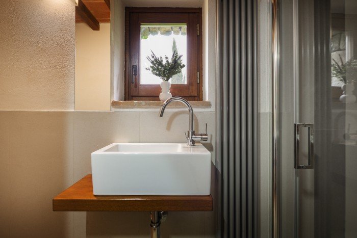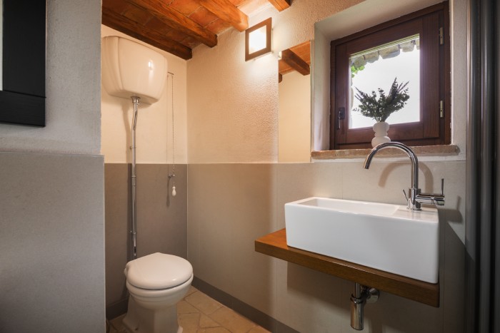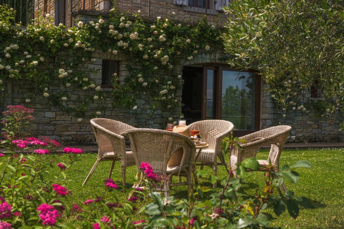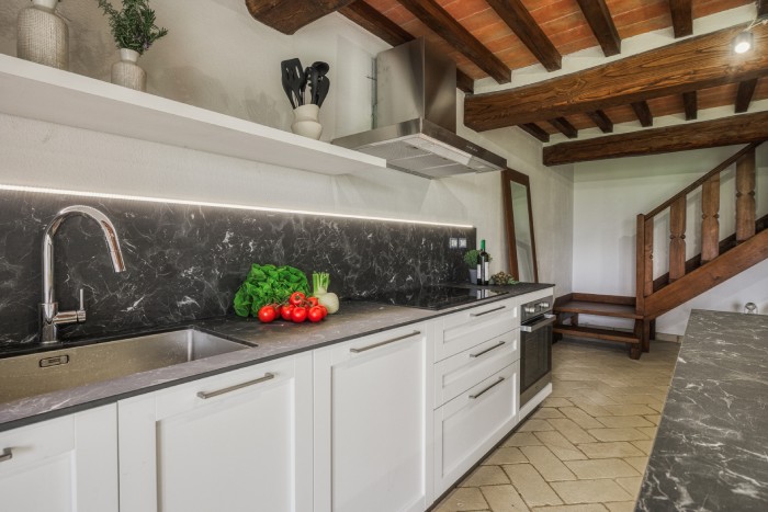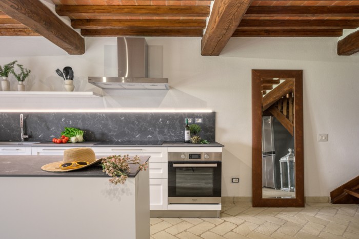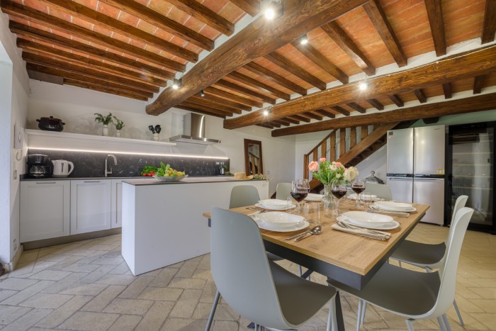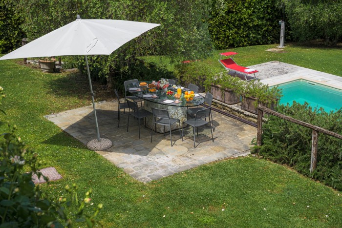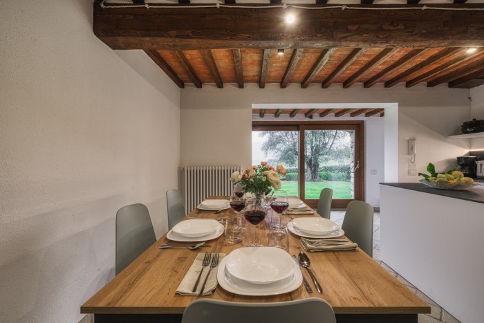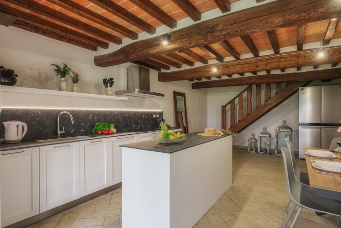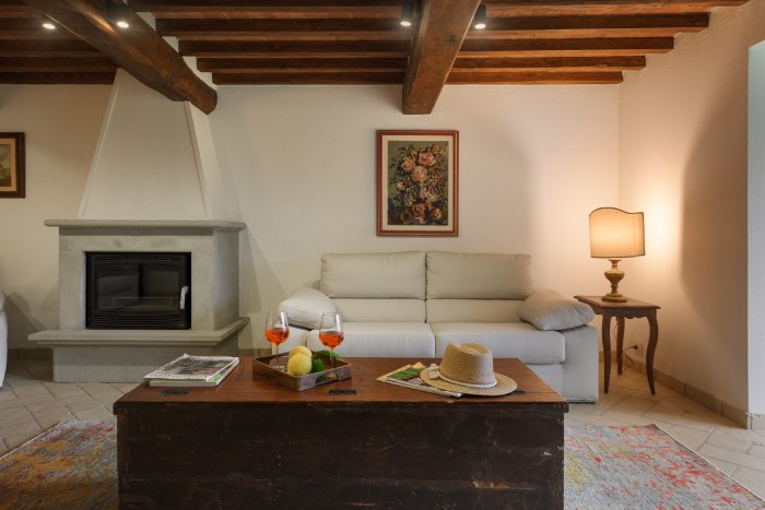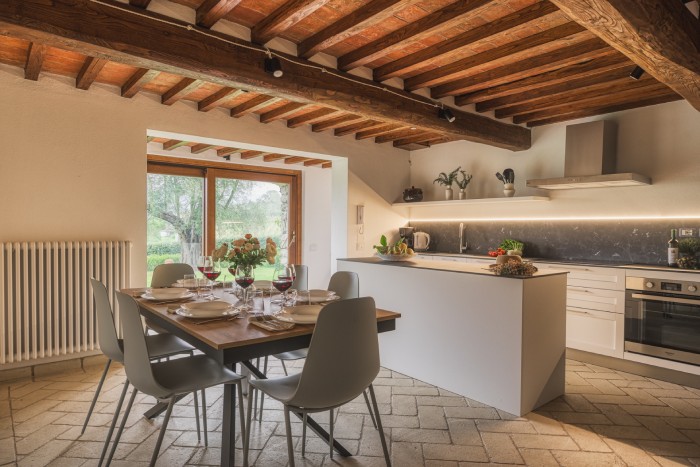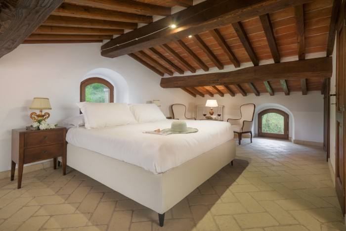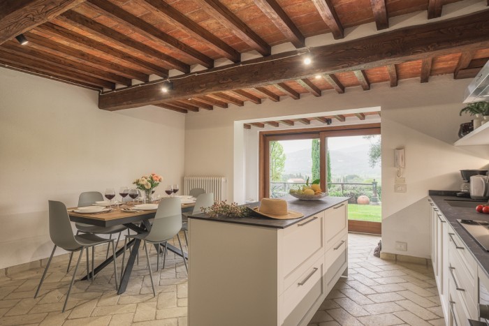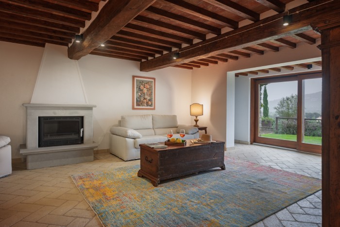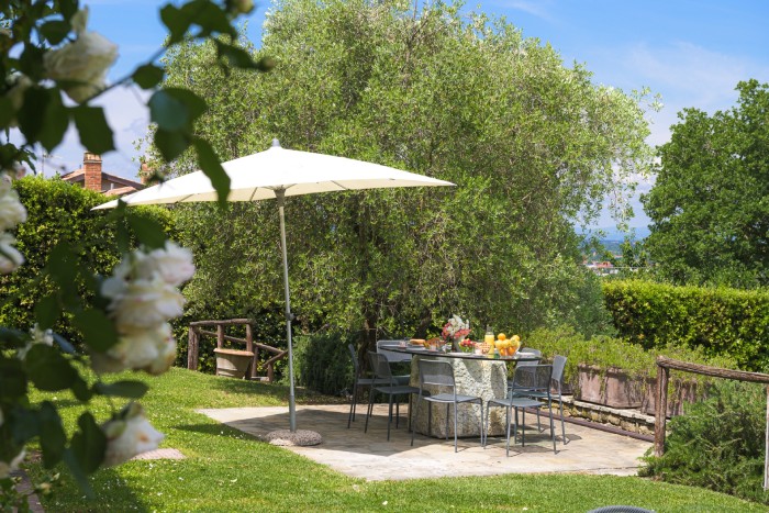 The villa is set in a large, garden with lovely panoramic, countryside views. A private pool sits just below the villa. There is a bbq and a number of seating areas for relaxing and outdoor dining.