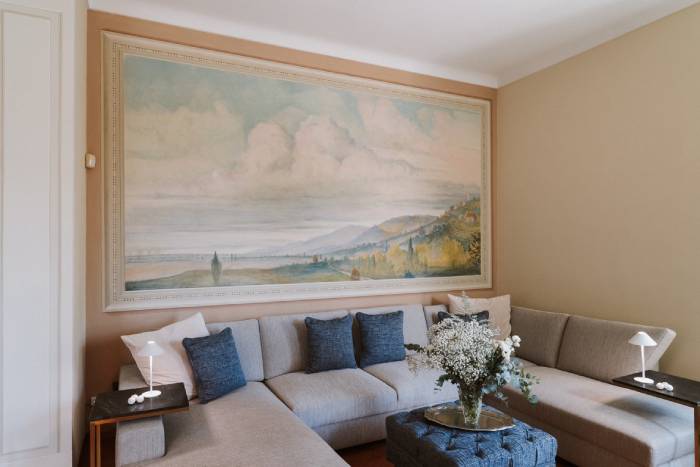 Pescia is a beautiful, restored villa sleeping 10 guests in 5 bedrooms (+ sofa bed, available on request) situated in the hills surrounding the charming walled city of Lucca. From the outdoor patio of this