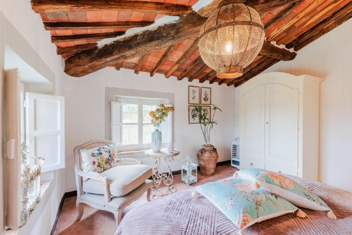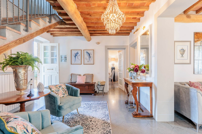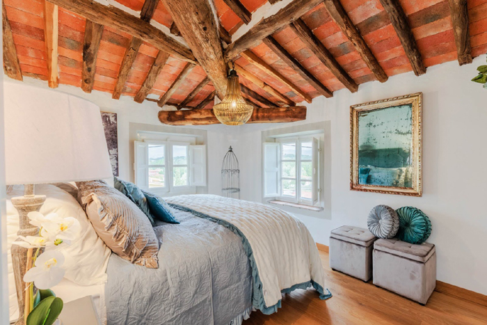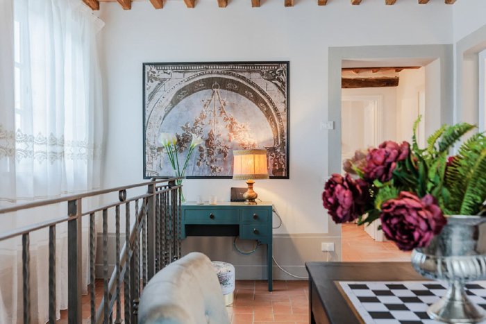 restored interiors have classic cotto floors, beamed ceilings and a number of antique