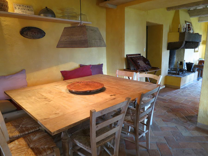 The outdoor dining terrace is covered with grape vines and is equipped with an external barbeque. A small slope with steps leads down to the pool. The pool area has sun loungers and an infinity pool with fantastic views. There is an external shower and the entire area is surrounded by forests. The house is equipped to seat guests staying in the house plus some occasional guests. Meals for up to 15/16 guests using the existing house equipment are possible.