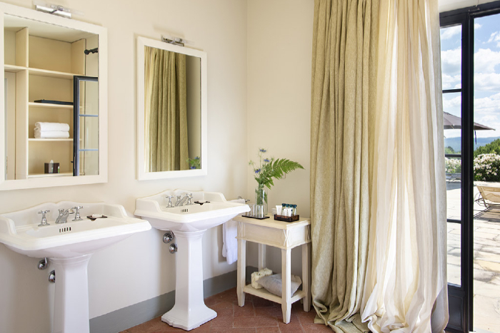 This fabulous country estate has a gem of a village as its central point, which retains its original character and charm. Wandering over the little stone bridge and up the lane into the heart of this picturesque village makes you feel that time has stopped. The large aristocratic villa dominates the skyline as you look back. It is a beautiful and imposing building that sits just above the pretty village. It is steeped in history and once belonged to the Duke of Aosta and his family and originally dates back as far as 1039. The village has a tiny piazza and a lovely church at its heart and the village houses span out from there. Today, the estate belongs to part of a well renowned fashion family, who have painstakingly restored the Tuscan Estate and Spa, which covers an extensive 700 hectares.