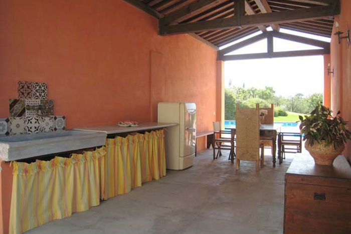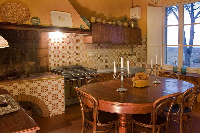 seats up to 12 guests. There is a Tuscan kitchen with an open fireplace
