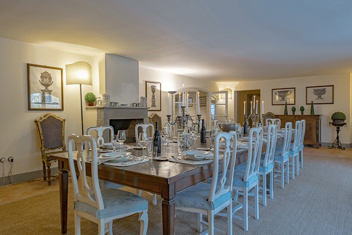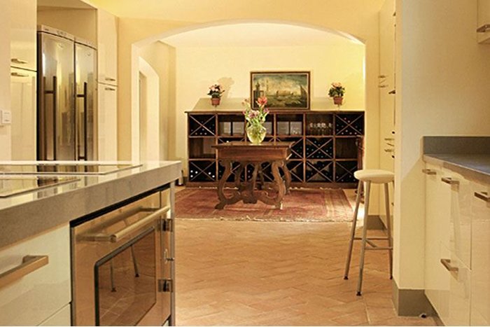 This is a fabulous villa providing a 5 star service for more discerning guests. There is a fully equipped professional kitchen and formal dining room for up to 14 guests. There is a bathroom on this level as well as a laundry room and service area. There is also a well stocked wine library with a range of top class Italian and Tuscan wines. There is direct access to an outdoor patio with seating and stairs to the garden level.