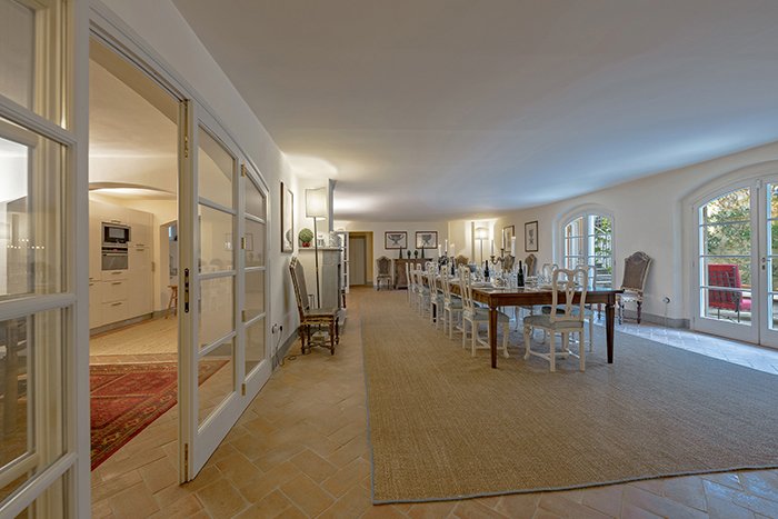 The Villa is set in very large grounds (6 hectares – 14.8 acres) with a private lake. Outdoor facilities include a 40 foot pool that has loungers and umbrellas around the pool. There is a private tennis court set in the well maintained garden at a short distance from the villa. There is a 80 sq mt pool house located adjacent to the pool and equipped with a gym, which has a treadmill, stationary bike, free weights, abdominal bench as well as sauna, bathrooms, changing rooms. There is also a bar complete with refrigerated cupboard, ice maker and coffee machine. There is a pretty pergola for outdoor dining adjacent to the ground floor kitchen that seats up to 16 people and additional furnished areas for relaxing outdoors. All set in extensive grounds that provide a private haven from the outside world, whilst being within easy reach of the town centre.